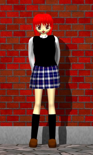 チェックのスカートが3Dで作ってみようと思って、作りはじめたものです。 スカート作るのが目的だったのでキャラは使いまわし・・・。 まぁ私なりにやってみたらこんな感じになりました。 誰かにいい作り方教えていただきたいです。 LW3DでUVマップが使えるようになれば、もう少しきれいにできるかも?