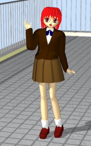 まりなの制服姿です。一応、高校生という設定。いまいち作り込みが足りないので、ライトウェーブを6にあげたら、もう一度いじくりたいと思っています。